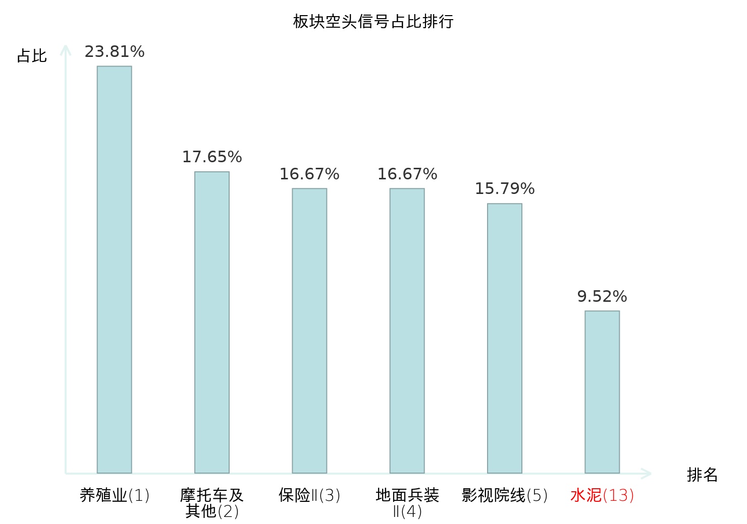全市场所有行业板块中主力空头信号占比排名中,养殖业板块位居第一。养殖业板块名次提升最快,较昨日上升114位。