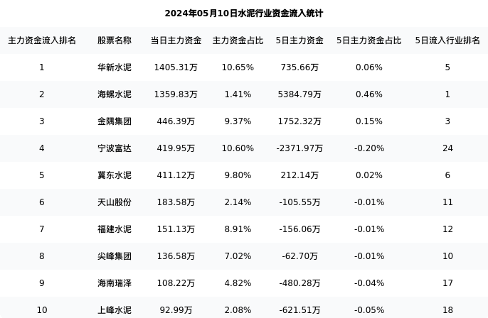 从主力资金流向来看,水泥行业今日主力资金流入6.79亿元,在所有申万二级行业中排名:62/131。