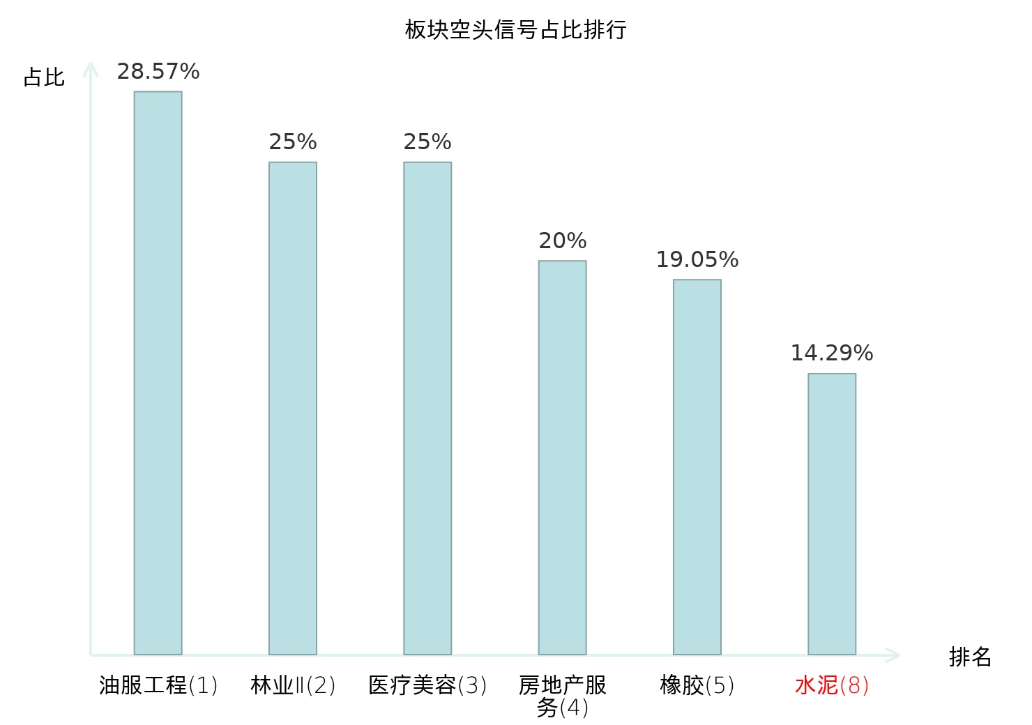 全市场所有行业板块中主力空头信号占比排名中,油服工程板块位居第一。炼化及贸易板块名次提升最快,较昨日上升102位。