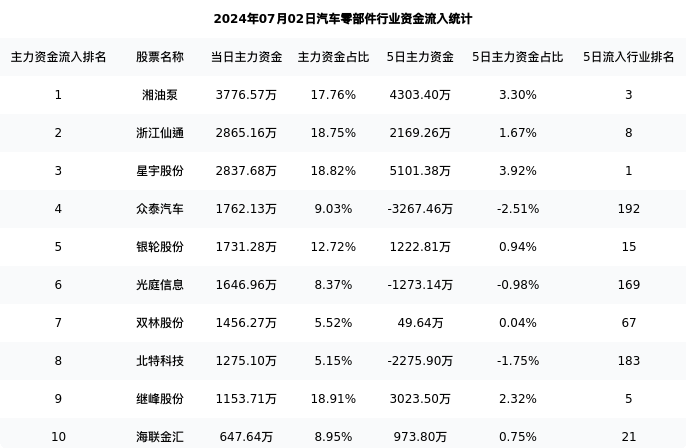 从主力资金流向来看,汽车零部件行业今日主力资金流入43.94亿,在所有申万二级行业中排名:5/131。