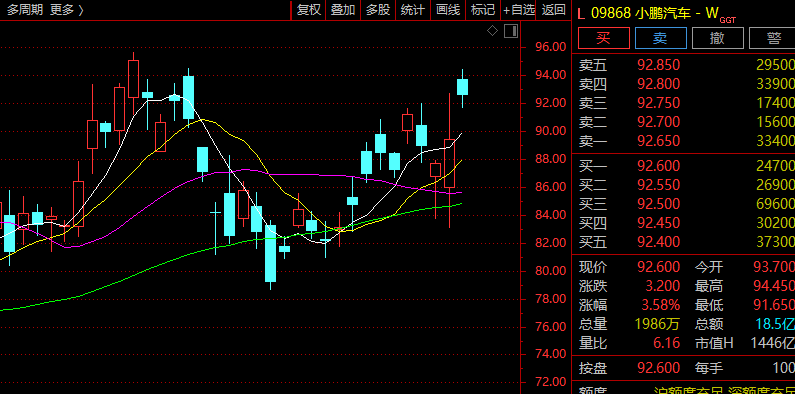 小鹏汽车盘中涨近5%