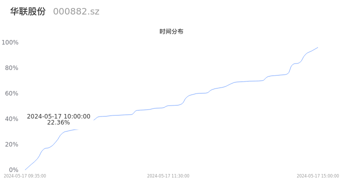 000882华联股份2024年05月17日成交38.57万手,成交金额5613.65万元,相较昨日缩量8932手,换手率1.41%,成交清淡。