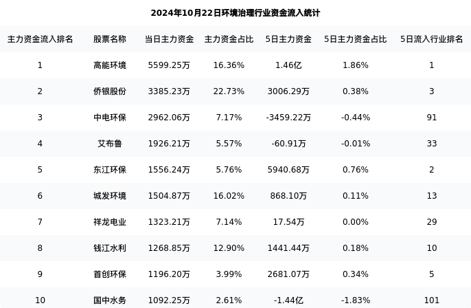 从主力资金流向来看,环境治理行业今日主力资金流入43.23亿,在所有申万二级行业中排名:2/131。