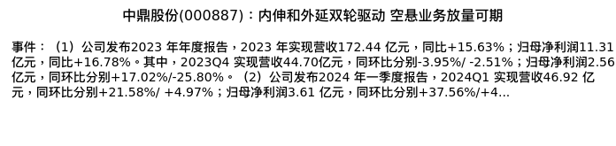 值得注意的是:2024年05月西南证券的郑连声分析师,首次发布关于中鼎股份的研究报告,标题为:中鼎股份(000887):内伸和外延双轮驱动 空悬业务放量可期。