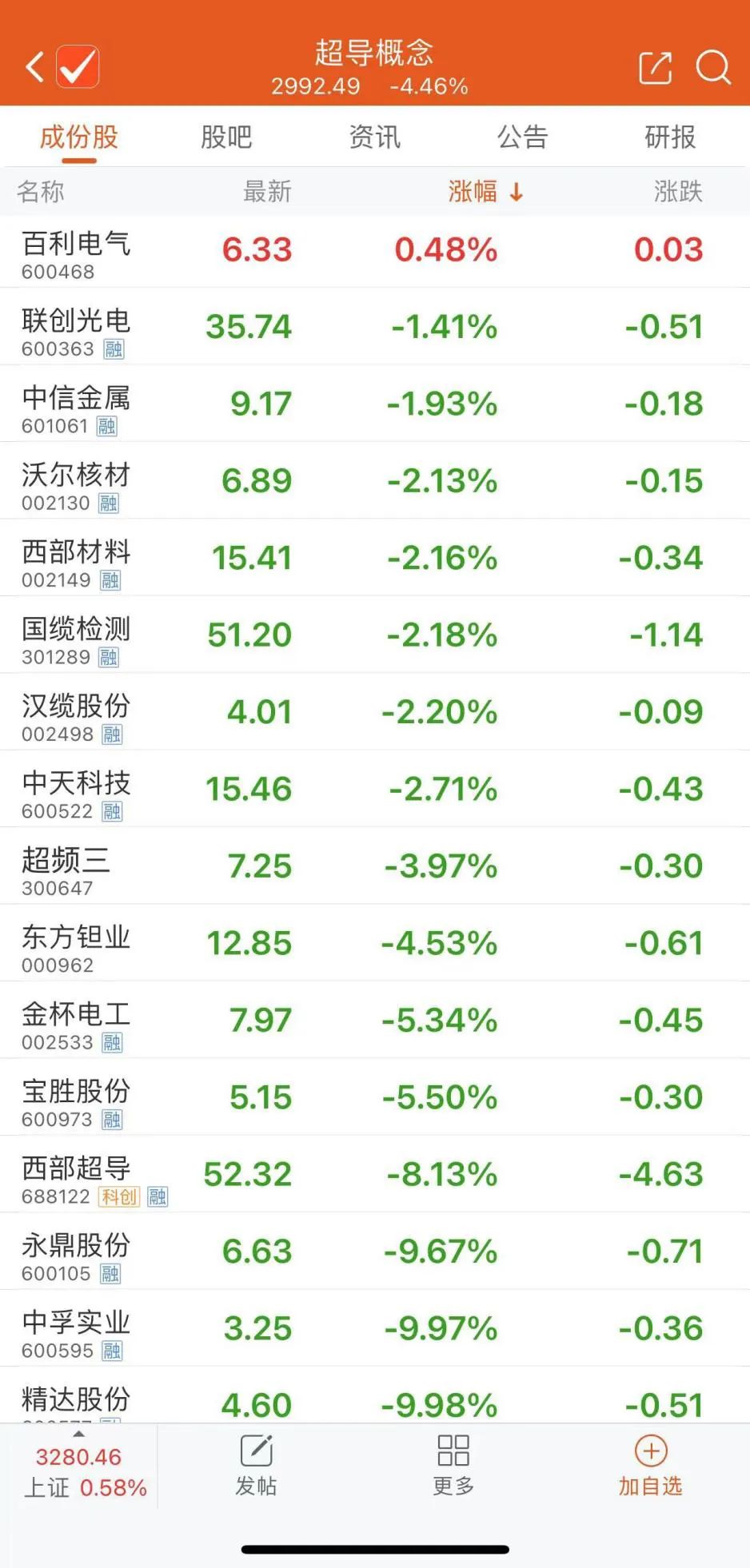 截至8月3日收盘,A股超导概念板块飘绿,板块日跌幅为4.46%,除了百利电气,其余个股均下跌。前几个交易日涨幅较大的西部超导、永鼎股份、中孚实业跌幅分别达到8.13%、9.67%和9.97%。
