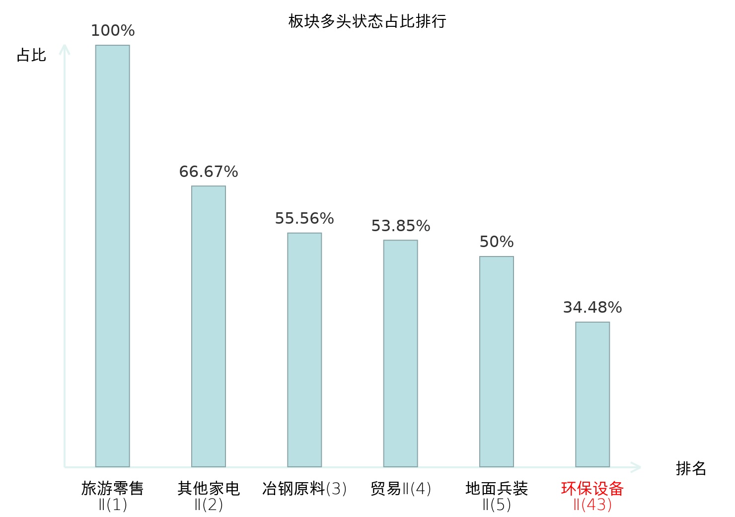 全市场所有行业板块中主力多头状态占比排名中,旅游零售Ⅱ板块位居第一。房屋建设Ⅱ板块名次提升最快,较昨日上升58位。