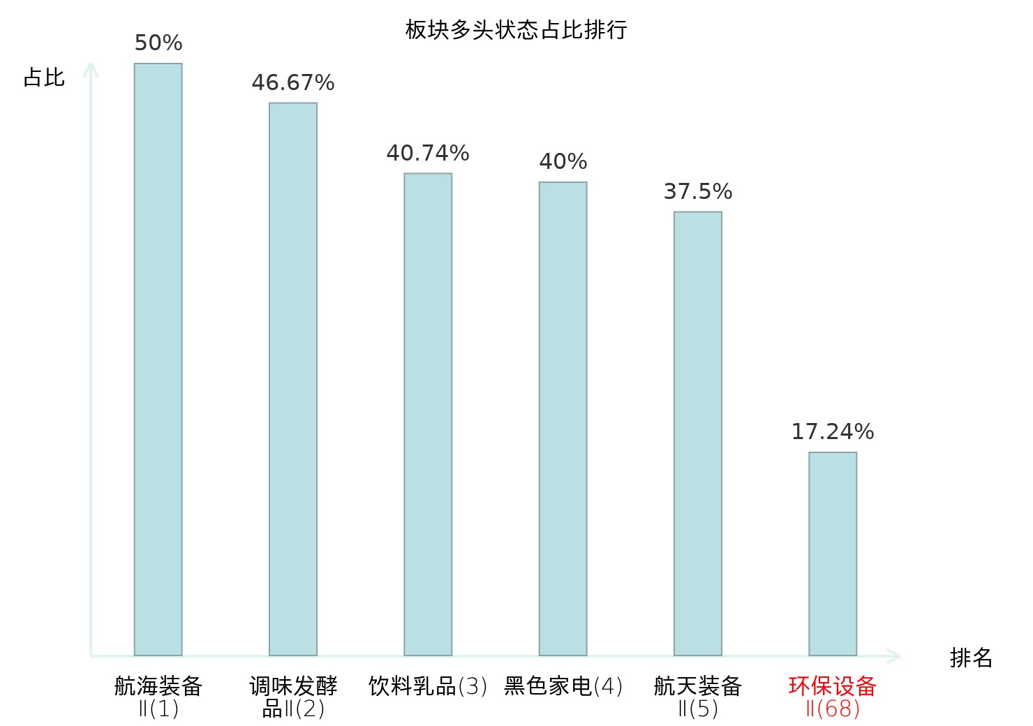 全市场所有行业板块中主力多头状态占比排名中,航海装备Ⅱ板块位居第一。航海装备Ⅱ板块名次提升最快,较昨日上升99位。