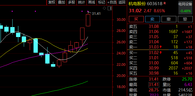 光纤概念延续强势,杭电股份盘中2连板,续创历史新高,法尔胜、永鼎股份、长飞光纤、亨通光电、特发信息、通鼎互联跟涨。