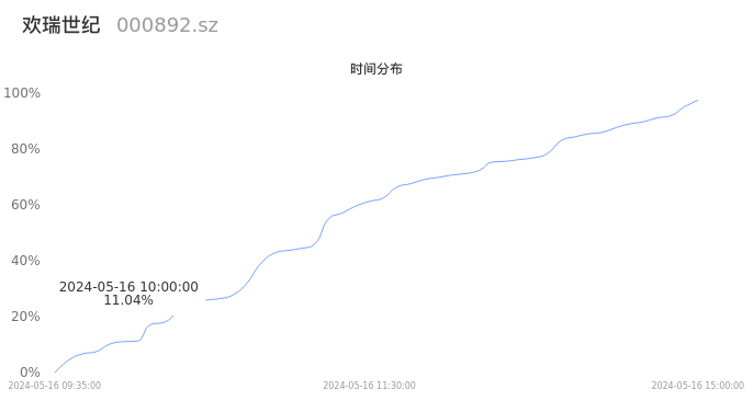 000892欢瑞世纪2024年05月16日成交21.29万手,成交金额6587.06万元,相较昨日放量11.18万手,换手率3.01%,成交清淡。