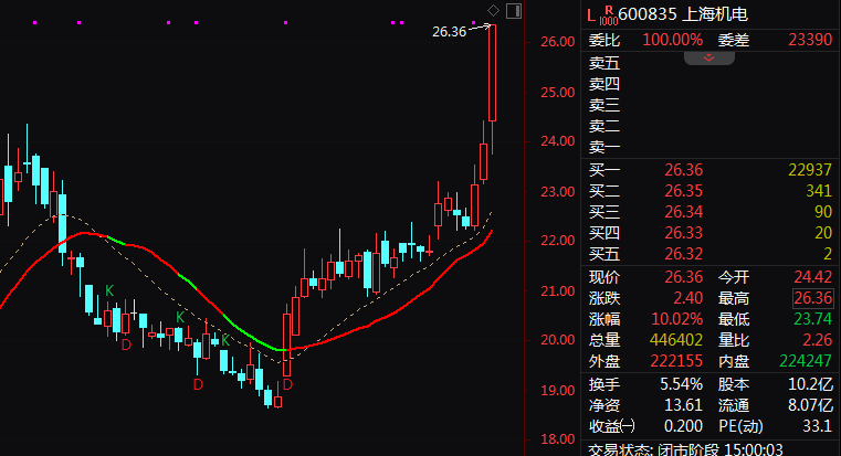 午后,机器人概念活跃,上海机电封涨停,涛涛车业、新时达、博杰股份、丰茂股份、山东威达、华辰装备等涨幅居前。