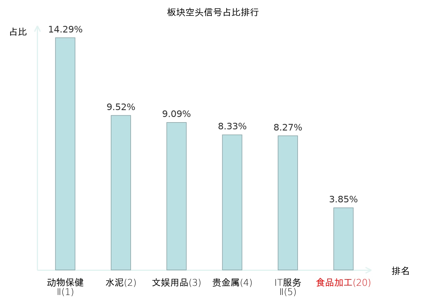 全市场所有行业板块中主力空头信号占比排名中,动物保健Ⅱ板块位居第一。广告营销板块名次提升最快,较昨日上升106位。