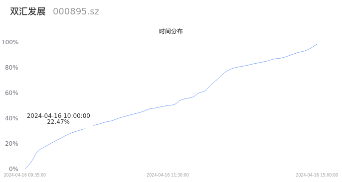 000895双汇发展2024年04月16日成交14.52万手,成交金额3.94亿元,相较昨日放量2.20万手,换手率0.42%,成交清淡。