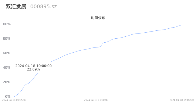 000895双汇发展2024年04月18日成交19.42万手,成交金额5.36亿元,相较昨日放量5.65万手,换手率0.56%,成交清淡。
