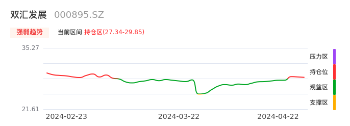 04月22日,双汇发展收报27.53,股价涨幅-0.18%,成交金额2.81亿元,换手率0.29%。