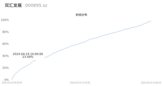 000895双汇发展2024年04月19日成交8.34万手,成交金额2.30亿元,相较昨日缩量11.08万手,换手率0.24%,成交清淡。
