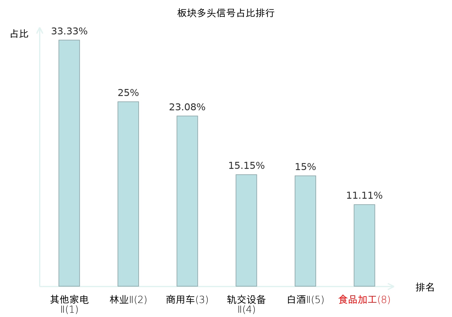 全市场所有行业板块中主力多头信号占比排名中,其他家电Ⅱ板块位居第一。其他家电Ⅱ板块名次提升最快,较昨日上升128位。