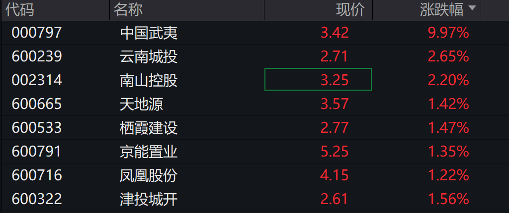 房地产板块短线拉升,中国武夷、华夏幸福拉升涨停,光大嘉宝此前封板,合肥城建、津滨发展、珠江股份跟涨。