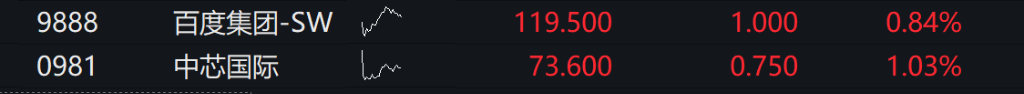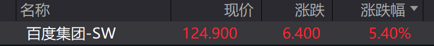 港股百度集团涨超5%。