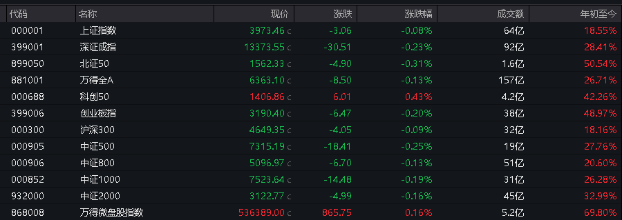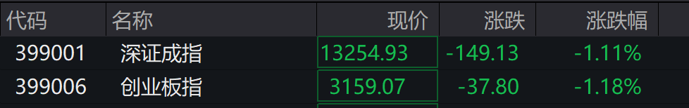 创业板指、深证成指跌幅均扩大至1%。