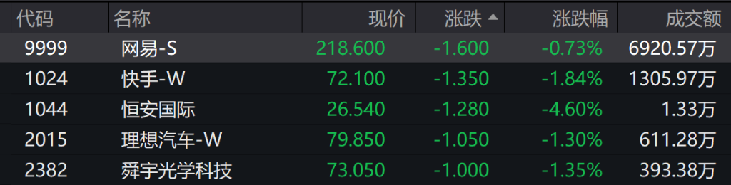 恒指低开0.04%,报26148.07点;恒生科技指数跌0.19%。快手跌1.8%,舜宇光学科技跌1.4%,理想汽车、海尔智家跌超1%;中芯国际涨1%,百度涨0.8%。