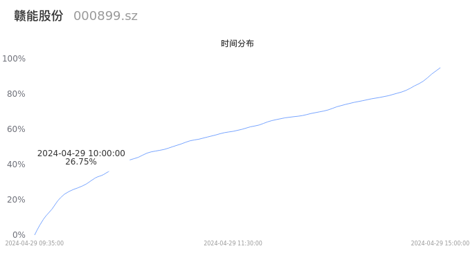 000899赣能股份2024年04月29日成交56.22万手,成交金额5.79亿元,相较昨日缩量20.03万手,换手率5.76%,成交清淡。