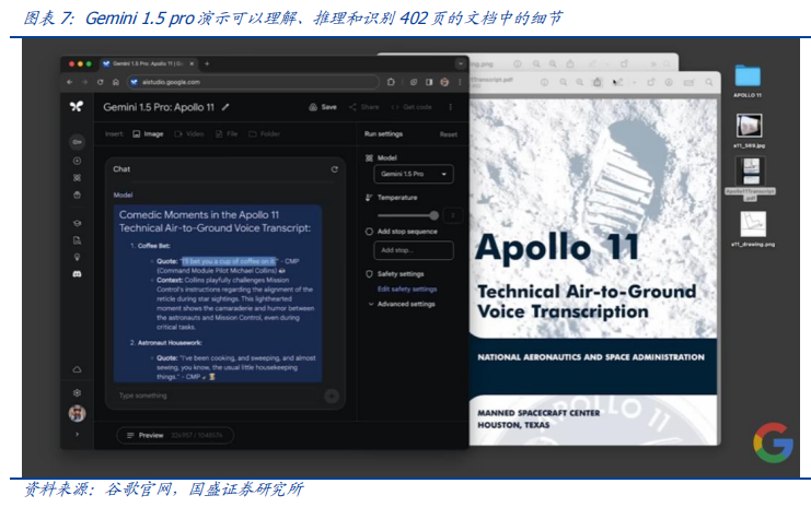 在谷歌官方发布的演示视频中,通过给出阿波罗11号登月任务的402页记录,Gemini