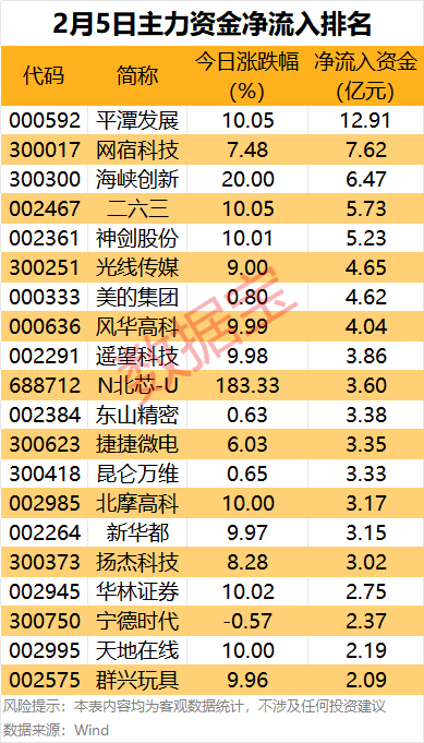 平潭发展获主力资金净流入12.91亿元,远超其他个股。福建本地股拉升,平潭发展、海峡创新涨停,厦门港务、招标股份、路桥信息、三木集团跟涨。