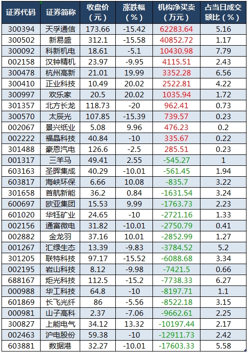 龙虎榜机构净买入12股 天孚通信居首