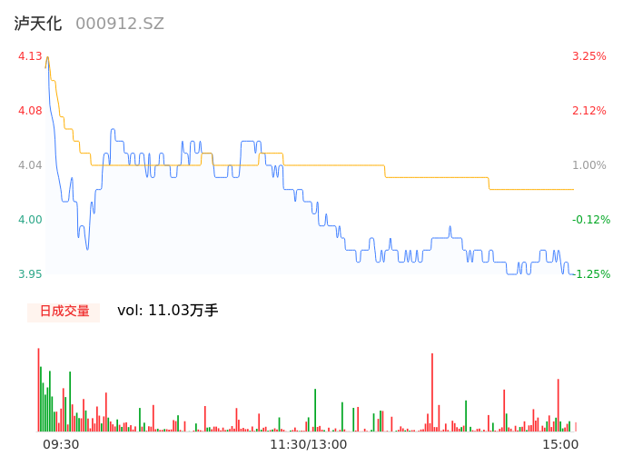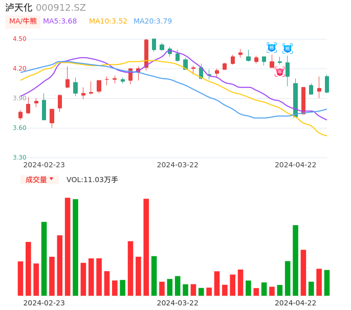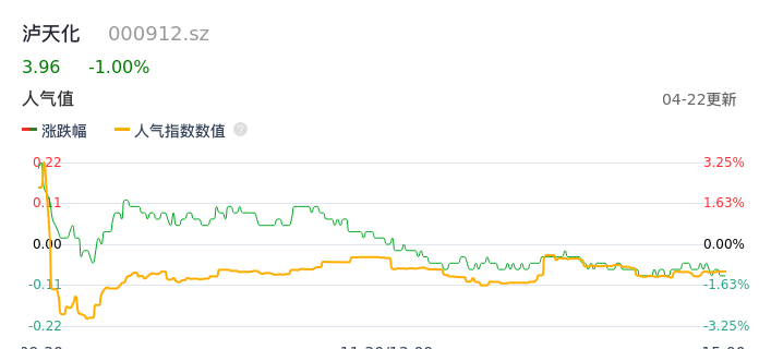 04月22日,泸天化收报3.96,股价涨幅-1.00%,成交金额4430.14万元,换手率0.70%。