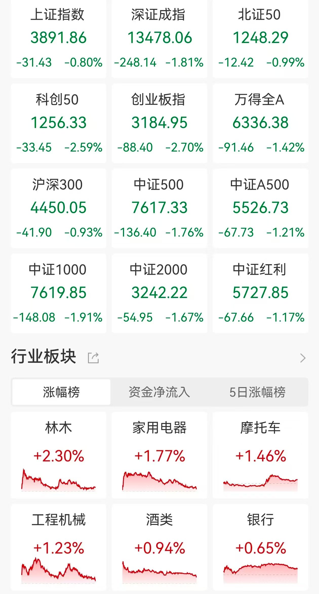 A股收评:三大指数齐跌!创业板指跌逾2%,全市场近4400股下跌,摩托车、交运设备股逆市走高