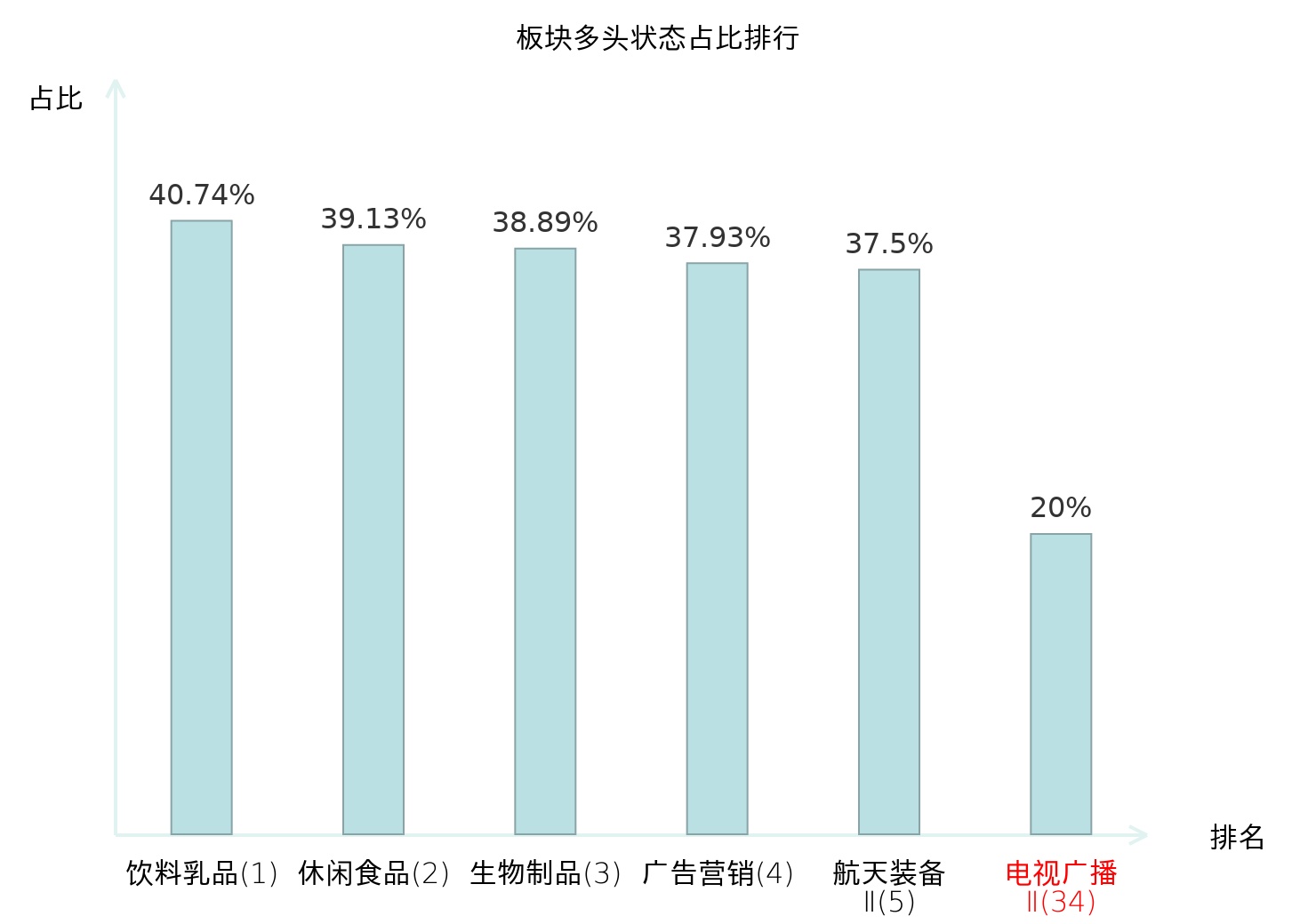 全市场所有行业板块中主力多头状态占比排名中,饮料乳品板块位居第一。国有大型银行Ⅱ板块名次提升最快,较昨日上升71位。