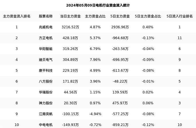从主力资金流向来看,电机行业今日主力资金流入10.15亿元,在所有申万二级行业中排名:1/131。