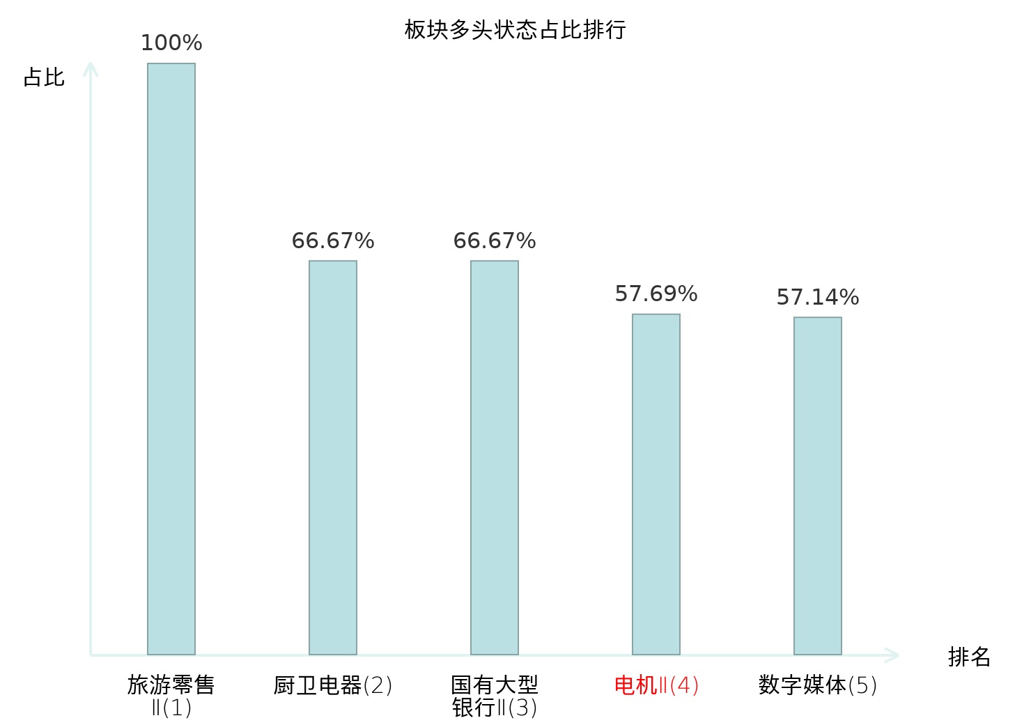 全市场所有行业板块中主力多头状态占比排名中,旅游零售Ⅱ板块位居第一。汽车服务板块名次提升最快,较昨日上升70位。
