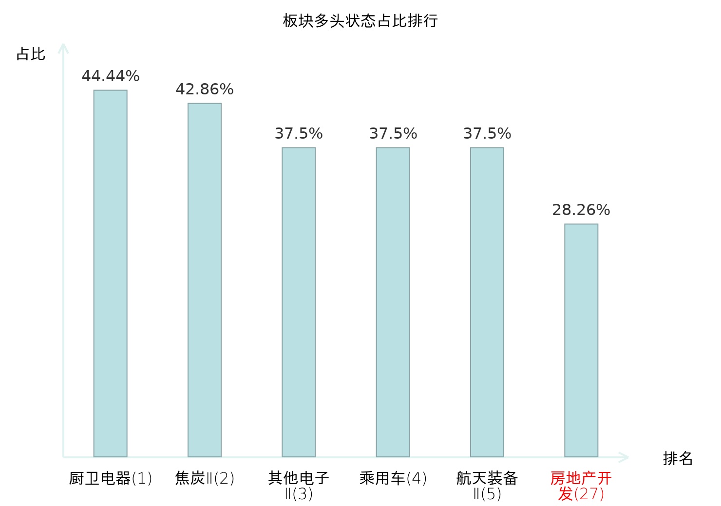 全市场所有行业板块中主力多头状态占比排名中,厨卫电器板块位居第一。元件板块名次提升最快,较昨日上升69位。