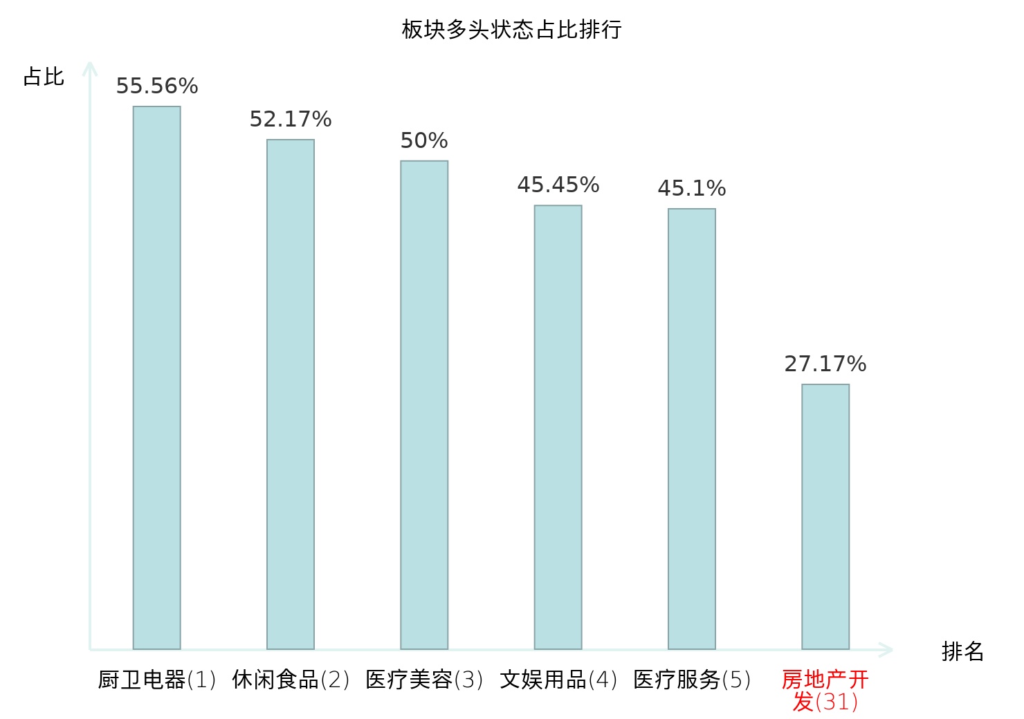 全市场所有行业板块中主力多头状态占比排名中,厨卫电器板块位居第一。林业Ⅱ板块名次提升最快,较昨日上升87位。