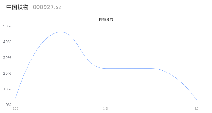 然后我们来看下当日成交的价格分布。经过分析发现,该股票当日成交价格波动低于10个最小波动价位,由于可以参考的样本量非常少,价格分布分析的结果不具有指导意义,下图仅供参考。