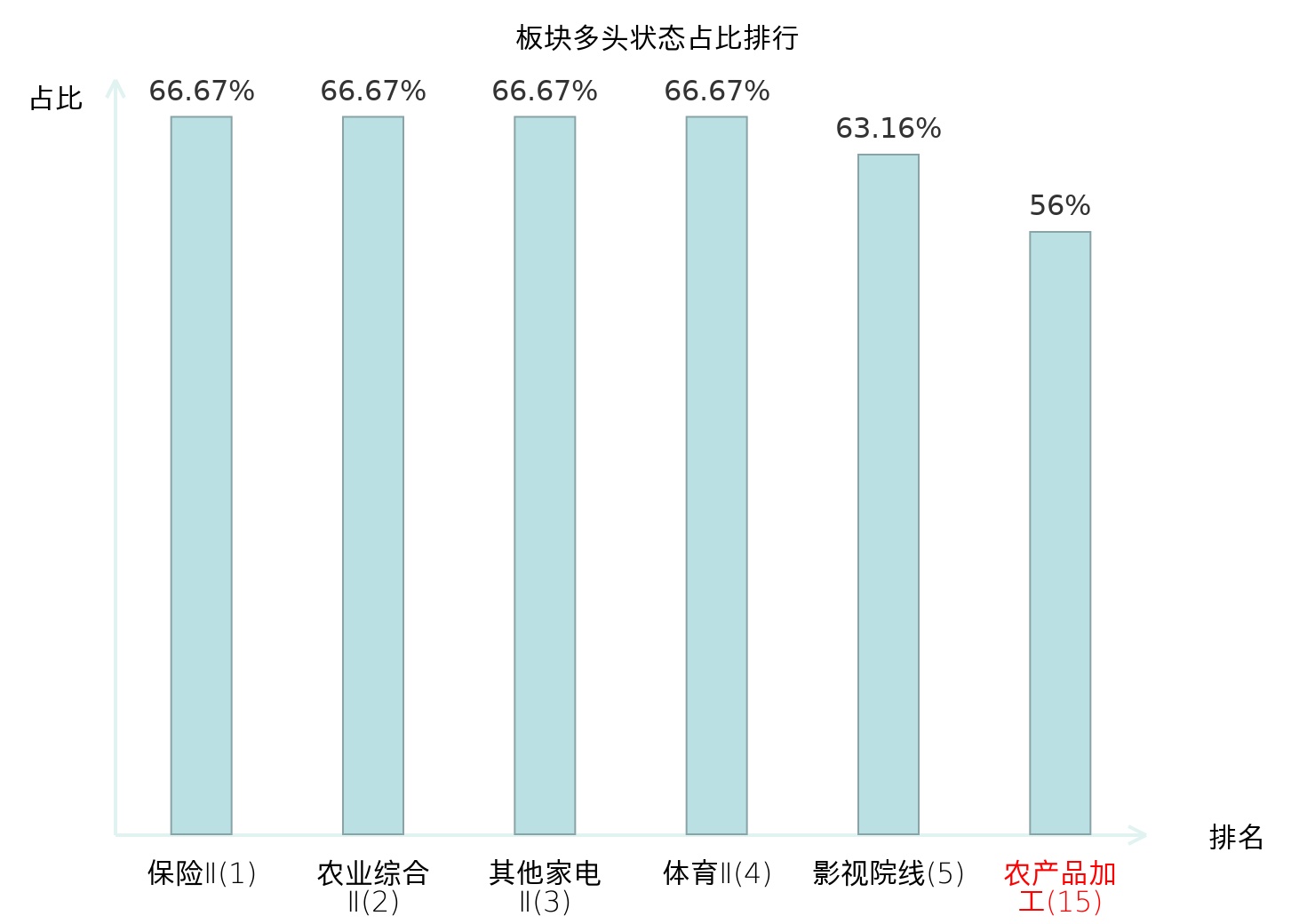 全市场所有行业板块中主力多头状态占比排名中,保险Ⅱ板块位居第一。冶钢原料板块名次提升最快,较昨日上升53位。