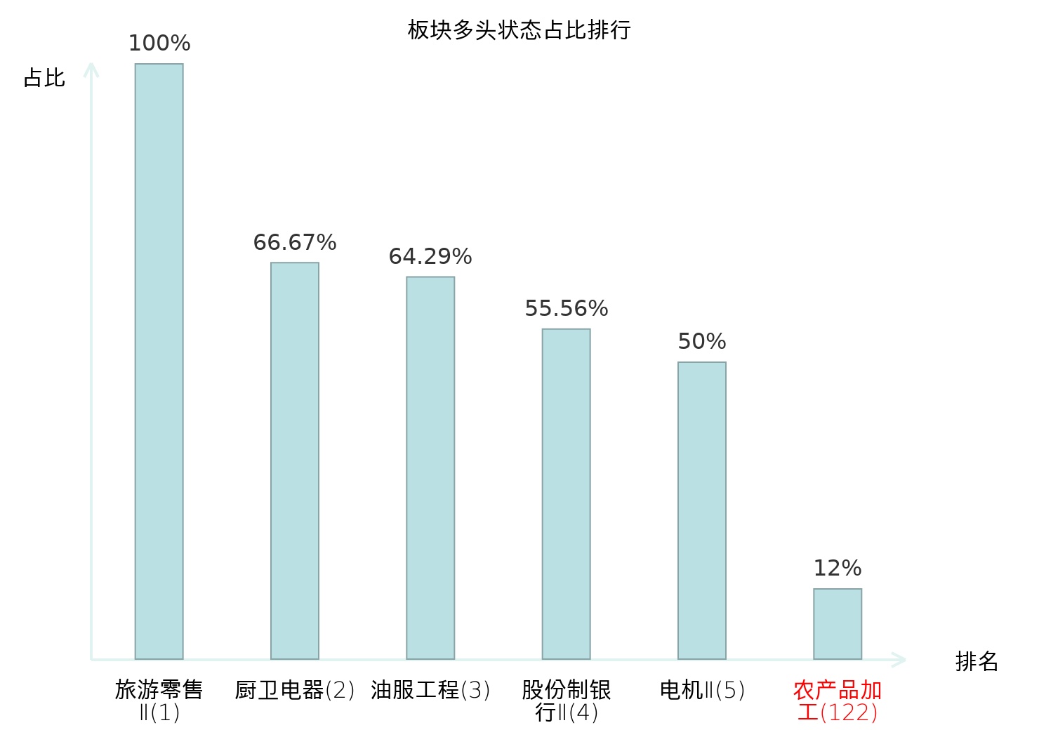 全市场所有行业板块中主力多头状态占比排名中,旅游零售Ⅱ板块位居第一。航海装备Ⅱ板块名次提升最快,较昨日上升78位。