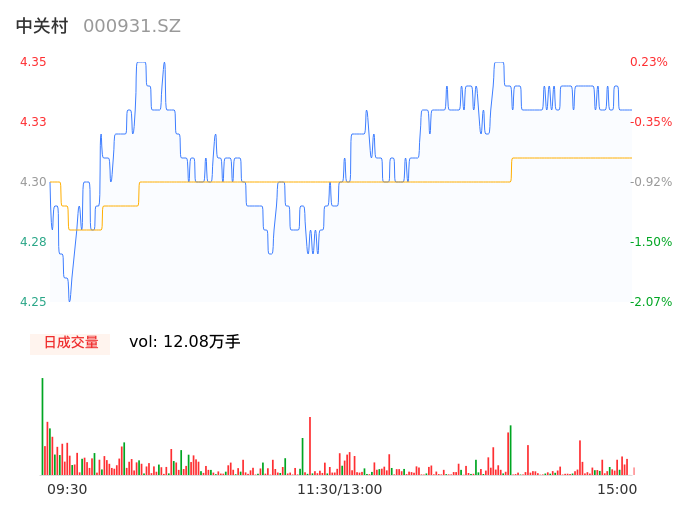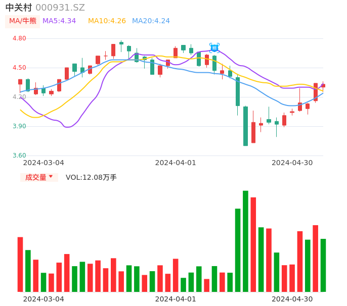 04月30日,中关村收报4.33,股价涨幅-0.23%,成交金额5206.21万元,换手率1.62%。