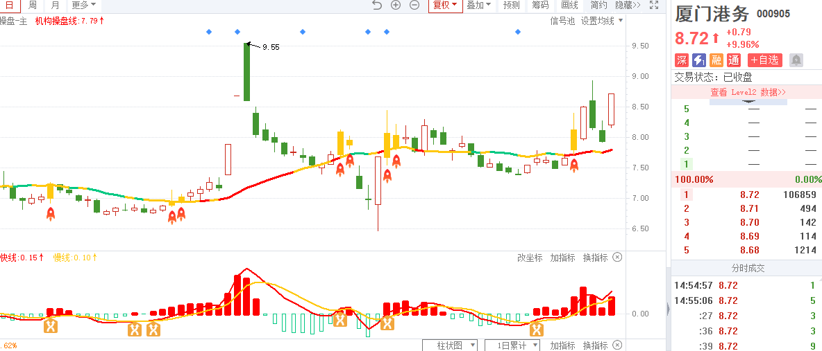 3)厦门港务-四维操盘-近期出现火箭信号且底部量柱由绿转红