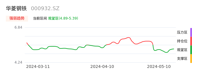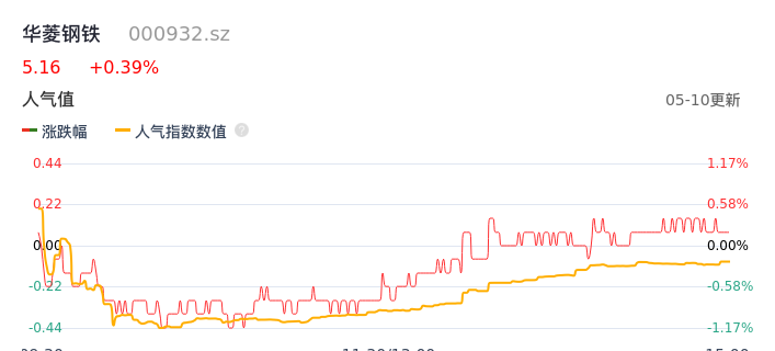 05月10日,华菱钢铁收报5.16,股价涨幅0.39%,成交金额4.40亿元,换手率1.24%。