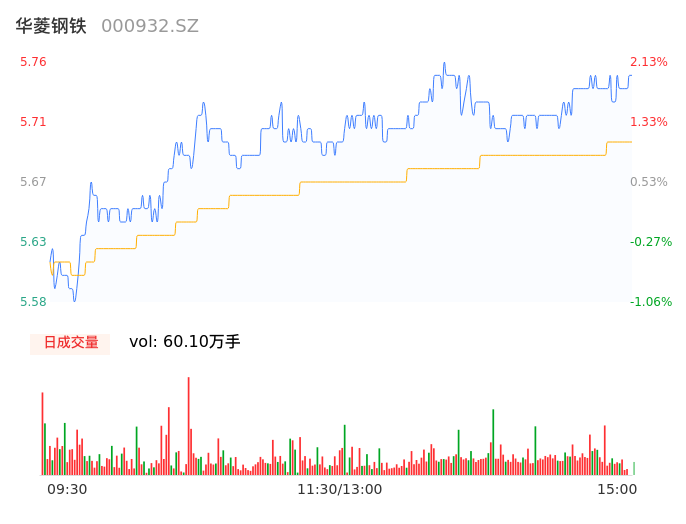 04月25日,华菱钢铁收报5.74,股价涨幅1.77%,成交金额3.42亿元,换手率0.87%。