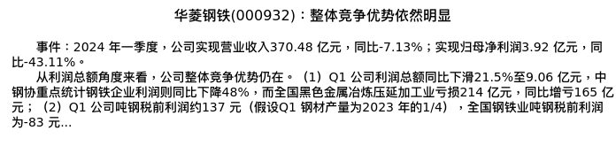 值得注意的是:2024年05月光大证券的王招华/戴默分析师,首次发布关于华菱钢铁的研究报告,标题为:华菱钢铁(000932):整体竞争优势依然明显。