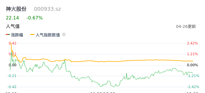 04月26日,神火股份收报22.14,股价涨幅-0.67%,成交金额10.49亿元,换手率2.12%。