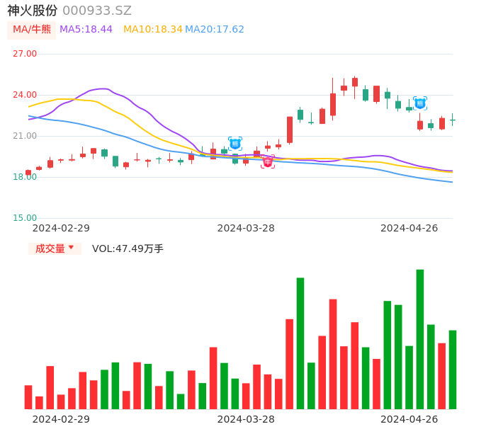 值得注意的是:2024年04月开源证券的张绪成分析师,首次发布关于神火股份的研究报告,标题为:神火股份(000933):煤价下行拖累业绩 看好煤铝增量。