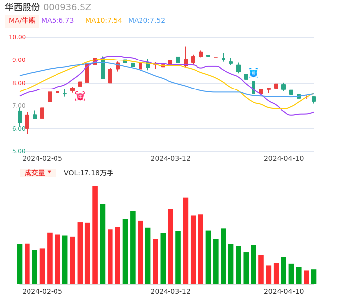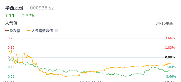 04月10日,华西股份收报7.19,股价涨幅-2.57%,成交金额1.24亿元,换手率1.94%。