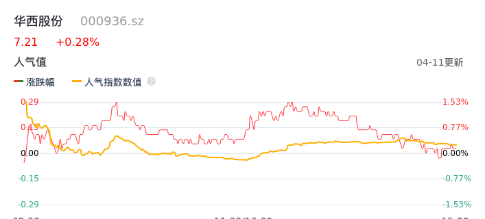 04月11日,华西股份收报7.21,股价涨幅0.28%,成交金额1.11亿元,换手率1.74%。