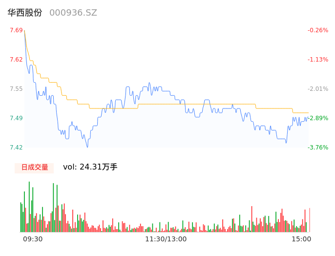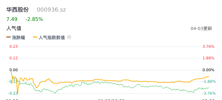 04月03日,华西股份收报7.49,股价涨幅-2.85%,成交金额1.82亿元,换手率2.74%。