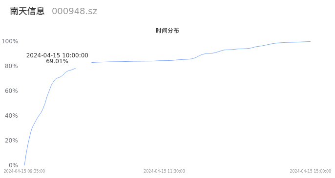 000948南天信息2024年04月15日成交34.60万手,成交金额4.90亿元,相较昨日放量30.91万手,换手率8.96%,成交清淡。