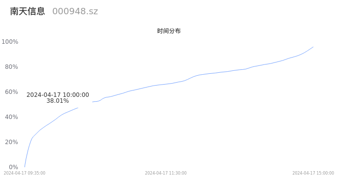 000948南天信息2024年04月17日成交20.41万手,成交金额2.74亿元,相较昨日缩量16.55万手,换手率5.29%,成交清淡。